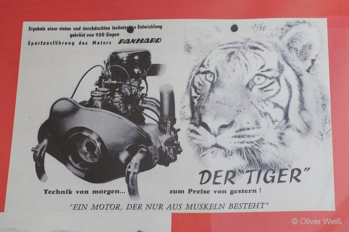 Werbung für den Tiger-Motor von Panhard: die stärkste Variante des luftgekühlten Zweizylinder Boxers, verbaut u.a. im Dyna Z und 24ct